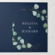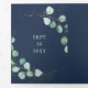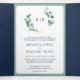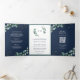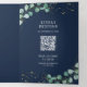 Greenery Gold Eucalyptus Navy Blue QR Code Wedding Tri-Fold Invitation