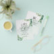 Make your wedding day unforgettable by personalizing your stationery with this beautiful sage and emerald green, and gold leaves design.