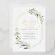 Modern greenery bridal shower invitation featured rustic watercolor botanical foliage greenery and real gold foil leaves and geometric frame, simple and elegant.