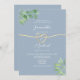 Greenery Gold Heart Dusty Blue Wedding Invitation