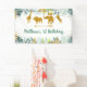 This cute birthday banner features faux gold foil safari animals with watercolor greenery.
