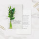 Give your guests attending the Celebration of Life Memorial of your departed the elegant Greenery in Vase Funeral Service Prayer Card. Personalize it with the name of the deceased, birth and death dates and poem or prayer on the back. This pretty custom botanical death tribute card features a digitally painted floral photograph of green plant foliage leaves on the stem in a glass vase with a white background.