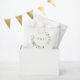 Customize these favour bags with the names of the bride and groom, their monogram, a special message, and the wedding date. The crest monogram features my watercolor green leaves wreath, adding a touch of natural beauty and sophistication to each box.