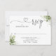 A simple elegant greenery leaves script heart kindly reply RSVP card with your details set in chic typography. Designed by Thisisnotme©