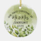 Greenery Leaves First Christmas as Mr. and Mrs. Ceramic Ornament