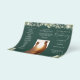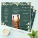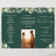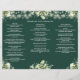 This elegant wedding trifold program features floral greenery and string lights on an emerald green background. Designed by Thisisnotme©