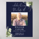 Greenery Navy Blue Celebration Of Life Photo Poster