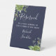 Greenery Navy Blue Memory Reserved For Wedding Pedestal Sign