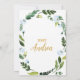 Botanical baby shower invitation with the title "oh boy!" and surrounded by watercolor painted tropical greenery wreath.. The backside is a matching gold tone. An elegant invitation that is perfect for a summer celebration.