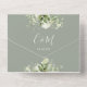 All in one wedding invitation with pretty greenery floral, signature style names and chic typography on a sage green background. The invitation includes a perforated RSVP card featuring your wedding website QR code. Designed by Thisisnotme©