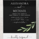 Rustic Greenery Branch and Leaves Watercolor Spring, Summer, Fall, Autumn, Winter Wedding RSVP Invitations with Black Background - includes beautiful and elegant script typography with modern botanical leaf and tree branch for the special Wedding day celebration.