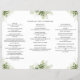 This elegant wedding trifold program features floral greenery and string lights on a black background. Designed by Thisisnotme©