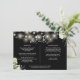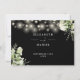 An elegant black and white greenery floral string lights wedding details information enclosure card personalized with your special details set in stylish typography and your names and wedding date on the reverse. Designed by Thisisnotme©