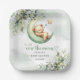 Greenery teddy bear over the moon gender neutral paper plate