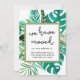 This modern green and white watercolor we have moved moving announcement card features fun hand script typography and beautiful tropical green foliage and boho greenery leaves with your change of address information.