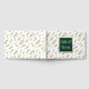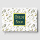 A simple yet eye-catching elegant seamless pattern featuring small watercolor leaves and sprigs in muted brown and green set against a stark white background that has a square dark teal blue / green inlay edged with real foil. A text template for your custom wording reads "guest book" on the front and your personalized title will appear on the spine. Both text templates are real foil too creating a timeless and luxury look to the cover.