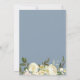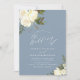 watercolor floral garland of ivory white flowers and green foliage with a dusty blue background.