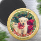 Greenery Wreath Custom Photo Gold Christmas Magnet