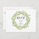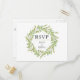 Elegant watercolor greenery wreath on the front and your RSVP Card details on the back of this postcard in chic slate grey lettering. Personalize with your respond by date, accept or decline and with possible meal choices. MATCHING items in our store.