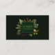 Make a sophisticated and uniquely vibrant statement with this elegant botanical business card. The design features a dramatic, solid black background, creating a luxurious canvas. Emerging from behind the central frame is a lush arrangement of diverse greenery, including detailed fern fronds and elegant palm leaves in rich shades of forest green. Adding striking pops of color are bright red berries and a single, vibrant yellow flower, creating a sophisticated contrast. This exquisite botanical display provides a stylish foundation for the central element: a clean, dark green square panel, perfectly centered and enclosed by a minimalist, thin matching border, offering a refined space for your professional details. These business cards are ideal for professionals seeking a bold, modern, and nature-inspired aesthetic with a unique touch, such as boutique florists, event planners, graphic designers, natural product creators, or artists. This versatile design can also be adapted for elegant event place cards, sophisticated product tags, or as a unique contact card for any modern professional.