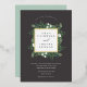 Our Greenhouse wedding invitation frames your names with an elegant square border of lush green foliage, botanical leaves, and tiny white flowers with gold foil trim. Personalize with your wedding details in classic lettering with a chic calligraphy script accent. A rich earth toned background provides a striking backdrop for your ceremony details. A beautiful choice for summer evening weddings, fall or autumn nuptials, or snowy winter weddings.