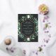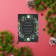 Choose these richly coloured botanical wedding invitations for elegant winter weddings, fall or autumn nuptials, or evening weddings in the summer. Chic design combines natural and geometric elements for a fresh and modern look. Your wedding details appear in white lettering, framed by a gold foil border and surrounded by green foliage, lush leaves, and small white flowers on a rich off-black background. Matching items available in our Greenhouse collection.