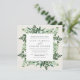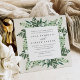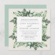 Choose these richly coloured botanical wedding invitations for elegant winter weddings, fall or autumn nuptials, or evening weddings in the summer. Chic square design combines natural and geometric elements for a fresh and modern look. Your wedding details appear in rich off-black lettering on a crisp white centre square, framed by green foliage, lush leaves, and small white flowers. A warm cream ivory background adds softness and texture. Matching items available in our Greenhouse collection.