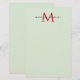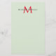 Greenish Grey & Red Monogram Modern Minimalist Stationery