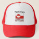 Greenlander Flag, in red and white, with the word GREENLAND below in the colours and motif of the flag. Above is a spot to add a name. Add your name for a personalized look on this trucker hat. Add someone else's name to customize a gift.