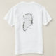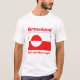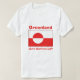 An editable title and slogan accompanies the circle of red and white over bands of white and red of the Greenlandic flag on the front of this t-shirt. The back displays a detailed map of Greenland.