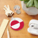 The flag of Greenland was designed by Greenland native Thue Christiansen. It features two equal horizontal bands of white (top) and red with a large disc slightly to the hoist side of centre. The top half of the disc is red, the bottom half is white.