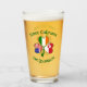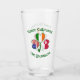 Drinking glass featuring the flags of Greenland, Ireland and United States of America, or USA, and showing in this shamrock with a different flag in each leaf on a drinking glass. Designed to celebrate St. Patrick's Day, 4th of July, and Greenlander holidays. Above the shamrock are the words THREE CULTURES, below are the words ONE YOURNAME. Words are in dark green, Celtic style, circular letters. Place your name in the correct spot for a personalized touch, or, to create a customized gift of this drinking glass,, just add someone else's name.