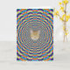 A digital abstract image with a psychedelic pulsing ring design in blue, yellow, red and green. As well as greetings cards this design is also available on most other products. If you need help or would like me to make changes to this or any other item email me. objowl at gmail.com. No obligation just pleased to be of service.