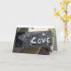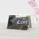 greeting card, everyday/love/appreciation ....outside has a lino-block carving of the word "love" and a heart - inside: in Spanish: "Cada dia te quiero mas que ayer y menos que manana" ("I love you more than yesterday, but not as much as tomorrow)...inside: light grey with a lace background