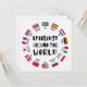 Cheerful world travel theme featuring greetings in different languages with country flags. Perfect for travelers, language lovers, and cultural enthusiasts who enjoy international diversity.