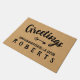 Greetings Burlap Farmhouse Feedsack Personalized Doormat
