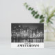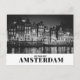 This stunning black and white photograph captures the magic of Amsterdam at night, with the city's beautiful building lights reflecting on the canal. The front of the postcard reads "Greetings from Amsterdam." It's a unique and vintage-inspired piece that's perfect for lovers of travel and cityscapes.