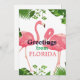 Greetings from Florida, tropical design with pink flamingos and palm fronds