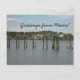 Rustic poles stick out of the water in front of this little Maine town. Customizable title. Part of my Maine Gift Store; stores in Maine are invited to buy these products in bulk to sell in their stores.