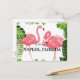 Greetings from Naples, Florida, tropical design with palm fronds and pretty pink flamingos