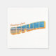 A retro-style design features the words “Greetings from Offline” with a scenic beach and ocean view incorporated into the letters.