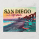 Greetings from San Diego Ca Watercolor Sunset 60s. This retro design makes a great Christmas or Birthday gift for fans of San Diego Beach. The retro summer vibes design is a perfect gift for travel lovers and tropical destinations fans.