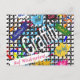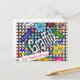 This postcard features a design that simulates a graffiti. The design is playful and contains greetings in different languages on vibrant colorful splashes and strokes on a background of a simulated wire fence. All elements are customizable. You can change their colors and positions, and remove unwanted details. You can also remove the texts and replace them with what you prefer, using Zazzle's text tool.