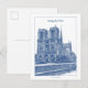 Surprise your friends with a real old-fashioned postcard from Paris with this elegant vintage indigo blue postcard depicting an engraving on the iconic Paris landmark that is the cathedral Notre Dame de Paris, seen from the bank of the river Seine.