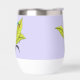 Une mignonne grenouille aux yeux rouges se dresse sur trois feuilles sur fond de violet clair