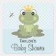 Ajoutez votre nom et votre événement à ces adorables princes de grenouilles préférez les étiquettes et les autocollants avec une froggie mignonne et kawaii portant une couronne contre un ciel bleu pois. Oeuvre © Chrissy H. Studios, LLC. Tous droits réservés.