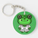 Un porte - clé au design avec une grenouille robotisée verdoyante, La poitrine de la grenouille a un plateau avec les mots "NO DISSECTION" brillant en lettres vert néon gras. La porte - clé est petite et compacte, parfaite pour un usage quotidien.