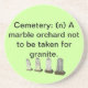 Quatre pierres tombales sous la définition de cimetière : n) Un verger de marbre à ne pas prendre pour le granit.