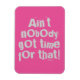 Funny slogan grey text design magnet with the phrase Ain't Nobody Got Time For That. Add additional text to give this design a personal touch.