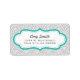 These cool and modern address labels have a trendy Asian-inspired grey, aqua blue and white geometric circle pattern.